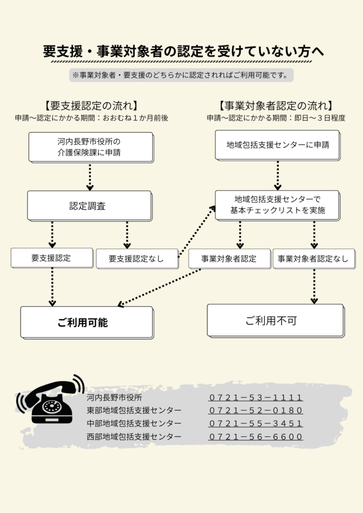 りはのあは、「介護予防・生活支援サービス事業」に該当するため、事業対象者の方もご利用になれます。